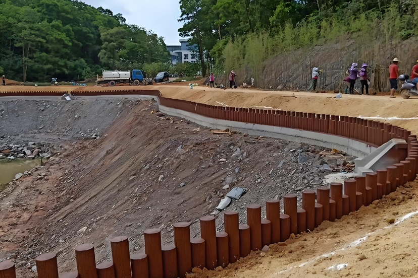 仿木樁批發廠家泓樺錦嘉-仿木樁施工能抗洪水沖擊嗎?