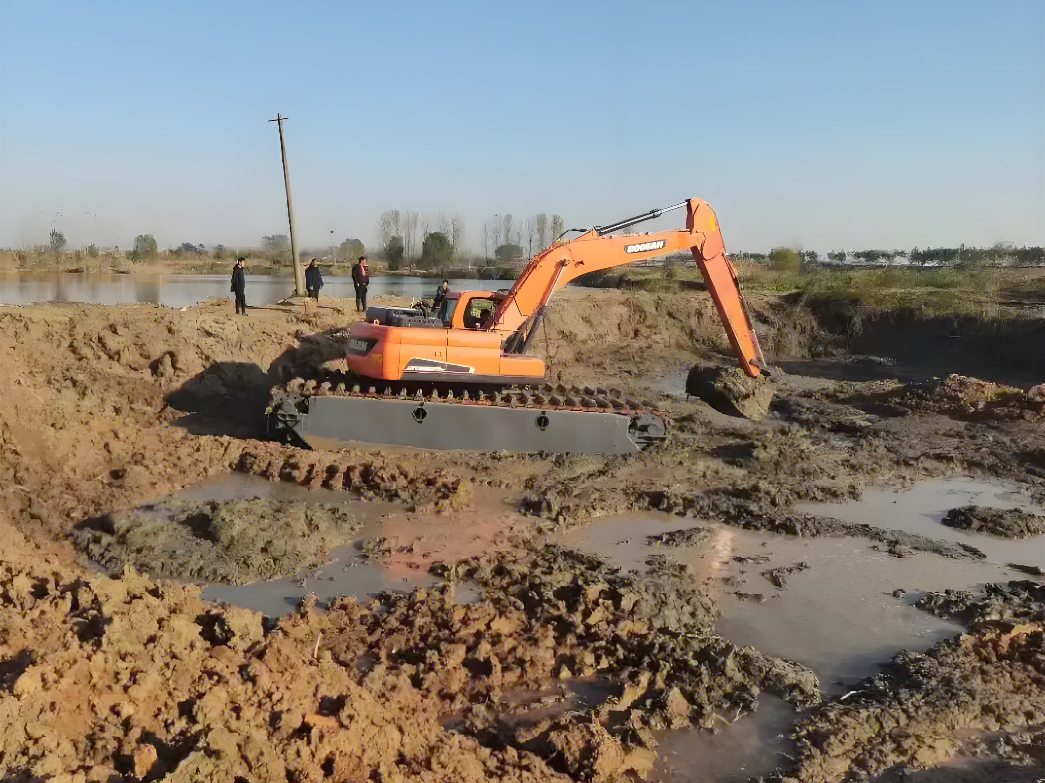 選對時段,施工效率能提高 30% 以上。比如在春秋季,水上挖機每天能作業 8-10 小時,而在冬季可能只能作業 5-6 小時。而且春秋季淤泥的流動性適中,更容易被挖起和運輸,而夏季淤泥含水量過高,運輸過程中容易泄漏,冬季則因結冰難以處理。